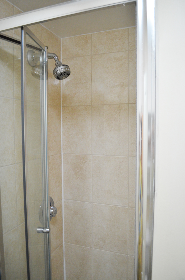Previously shower smelled damp, even if ventilation was good. Reason: cracked tiles, cracked grouting and broken shower trap what lead to growth of mould, unpleasant smell and became damp the ceiling under bath (lower level).